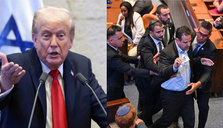 প্রতিবেদনে বলা হয়েছে, বিরোধীদলীয় এক সংসদ সদস্য ট্রাম্পের ভাষণের সময় ‘ফিলিস্তিনকে স্বীকৃতি দিন’ লেখা একটি কাগজ উঁচিয়ে প্রতিবাদ জানান। তার এমন আচরণে পার্লামেন্টে উত্তেজনা সৃষ্টি হয়। এ সময় সাময়িকভাবে বক্তব্য বন্ধ করতে বাধ্য হন ট্রাম্প।