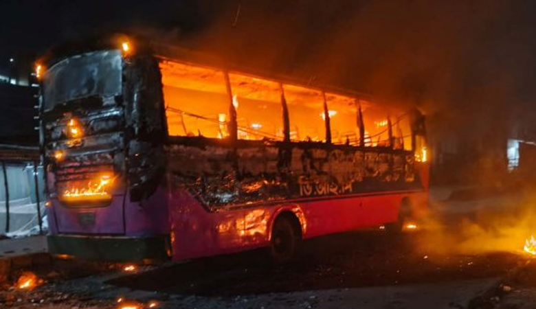 ফায়ার সার্ভিস সূত্র জানায়, গত সোমবার দিবাগত রাত থেকে মঙ্গলবার সকাল পর্যন্ত অন্তত ১২টি যানবাহনে অগ্নিসংযোগের ঘটনা ঘটেছে। এরমধ্যে ময়মনসিংহের ফুলবাড়ি এলাকায় আলম পরিবহন নামে একটি বাসে আগুনের ঘটনায় ঘুমন্ত অবস্থায় এক হেলপারের মৃত্যু হয়েছে।