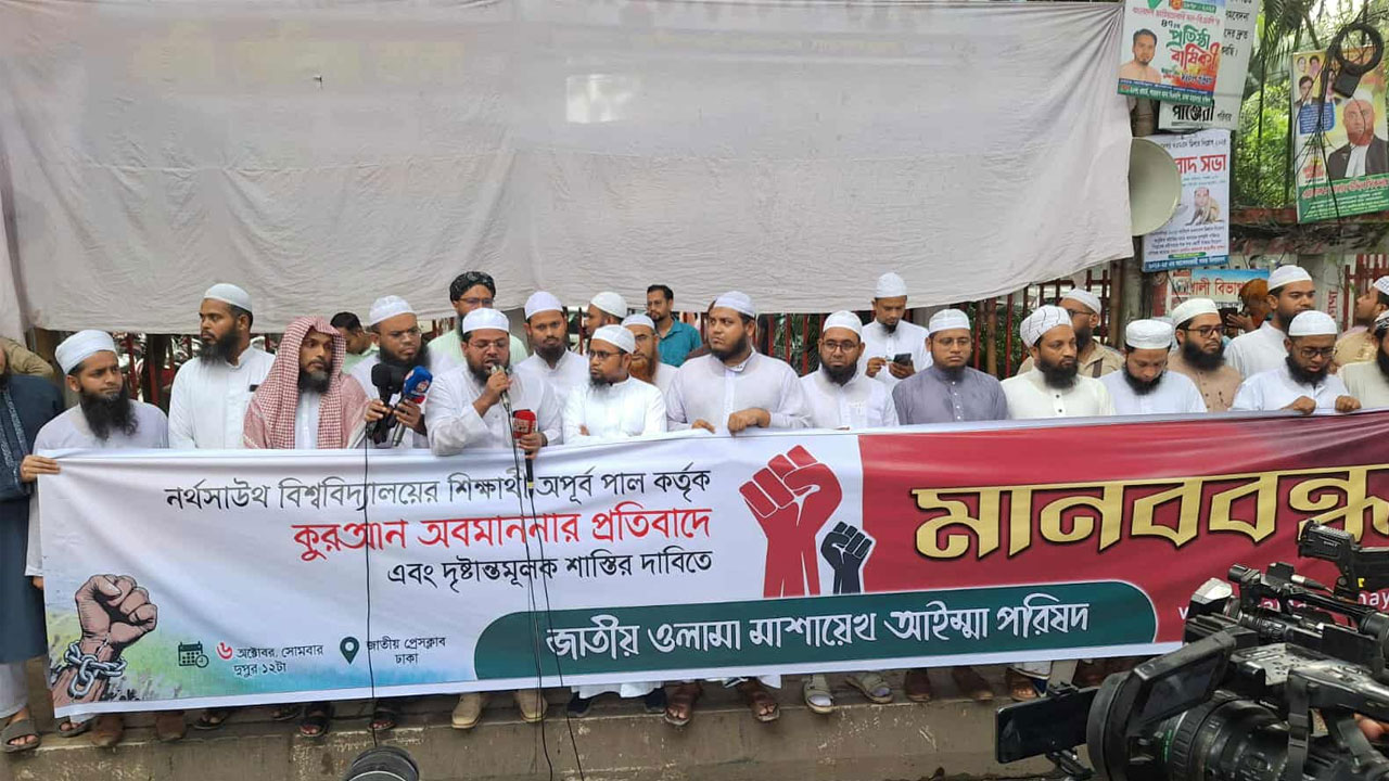 মানববন্ধনে সংগঠনটির সাধারণ সম্পাদক মুফতি রেজাউল করিম আবরার বলেন, আমাদের দেশের বেসরকারি যে ভার্সিটিগুলো রয়েছে সেখানে কাঠামোগত ইসলাম বিদ্বেষ কাজ করা হচ্ছে। যে পা কুরআনে লেগেছে, ওই পা নিয়ে বাংলাদেশের জমিনে আমরা চলতে দেবো না। যে হাত দিয়ে কুরআন অবমাননা করা হবে, বাংলাদেশের মানুষ ওই হাত শরীরে থাকতে দেবে না। সরকারকে উদ্দেশ্য করে তিনি বলেন, আপনারা তাকে গ্রেফতার করেছেন, নাকি সেভ করেছেন—এটা আমাদের বুঝার দরকার আছে। বলা হচ্ছে অপূর্ব পাল নাকি মানসিক রোগী ছিল। সে যদি মানসিক রোগী হয়ে থাকে, তাহলে তো তার হাসপাতালে থাকার কথা। সে মানসিক রোগী হয়ে কীভাবে? সে একটা ভার্সিটিতে শিক্ষার্থী হিসেবে থাকে?