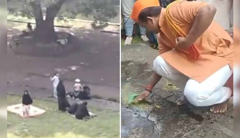 ভিডিওতে দেখা যায়, বিজেপি নেতারা দুর্গের ভেতর সেই স্থানটি গোমূত্র দিয়ে ধুয়ে ‘শুদ্ধি’ অনুষ্ঠান করছেন এবং ‘শিব বন্দনা’ পাঠ করছেন।