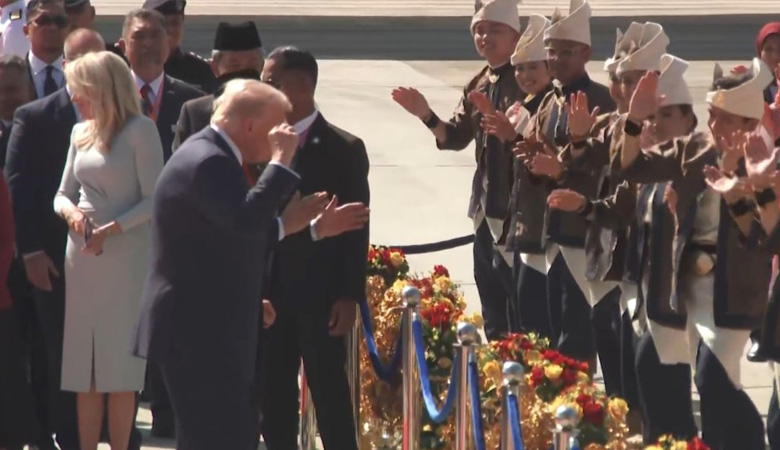আন্তর্জাতিক ডেস্ক: কুয়ালালামপুরে ট্রাম্প যখন বিমানের সিঁড়ি বেয়ে নামছেন, তখন মালয়েশিয়া ও যুক্তরাষ্ট্রের পতাকা হাতে অসংখ্য মানুষ তাকে স্বাগত জানিয়েছেন।