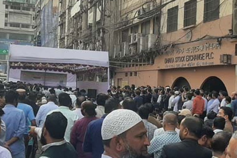 ১১ দাবিতে মতিঝিলে শেয়ারবাজারে বিনিয়োগকারীদের সমাবেশ