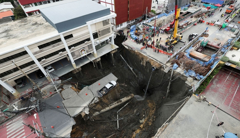ব্যাংককের রাস্তায় হঠাৎ ১৬০ ফুট গভীর গর্ত, ঝুঁকিতে হাসপাতাল