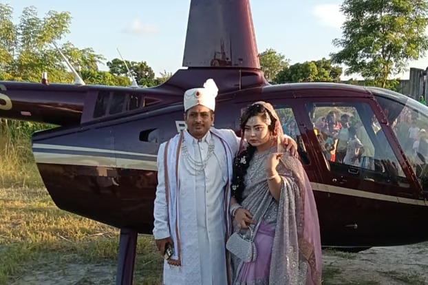 স্ত্রী পালিয়েছেন, ফের বিয়ে করে হেলিকপ্টারে আনলেন নতুন বউ